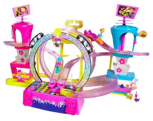 Get ready to rock with Polly! The Race to the Concert playset gives girls the ability to create a fun rock concert for Polly and her friends, with an added 360 twist! Tracks can be customized to send Polly and her friends to the music room, dressing room, souvenir shop, or straight to the stage. Once Polly and her friends are sent to the stage, girls can rock out to their performance of Polly’s hit song, “All Good Day!”